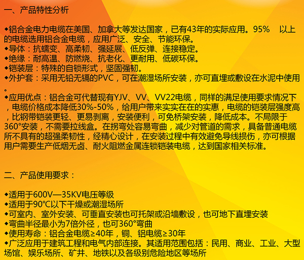 鋁合金電纜:鋁合金電纜ZR-YJLHV 瀏覽:3673